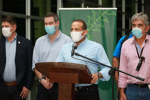 El gobernador cruceño, Luis Fernando Camacho, presidió la reunión en la que participaron instituciones agropecuarias, indígenas y autoridades políticas.