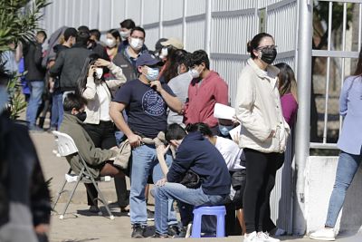 Los jóvenes mayores de 18 años empezaron a hacer fila este jueves por la mañana en la Fexpocruz, el centro de inmunización con mayor capacidad en la capital cruceña, pese a que las inyecciones se comenzarán a aplicar recién desde las 12.00. El Día constató que unas 200 personas ya esperaban afuera del recinto.