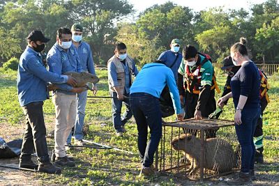 A través del programa de Biodiversidad, de la Dirección de Recursos Naturales de la Secretaría de Recursos Naturales y Medio Ambiente de la Gobernación de Santa Cruz, este viernes se desplegaron brigadas para rescatar las capibaras del barrio San Joaquín.
