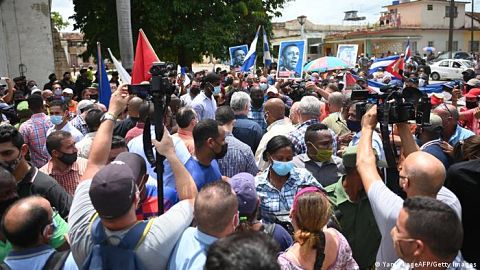 Miles de cubanos marcharon este domingo (11.07.2021) por las calles de la pequeña localidad de San Antonio de los Baños, al suroeste de La Habana, en una inédita protesta contra el gobierno, según videos de aficionados colgados en internet. Gritando especialmente "patria y vida", el título de una polémica canción, pero también "¡abajo la dictadura!" y "no tenemos miedo", los manifestantes, la mayoría jóvenes, marcharon por la localidad, de 50.000 habitantes y ubicada a 33 km al suroeste de la capital, según las imágenes.