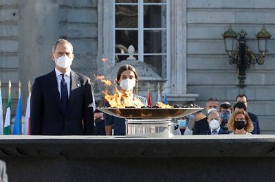 Los reyes y el Gobierno de España rindieron este jueves un homenaje a las víctimas del coronavirus y al personal de salud en medio de una quinta ola de contagios que está afectando sobre todo a los más jóvenes, pese al buen ritmo de la campaña de vacunación.
