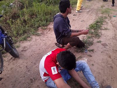 El joven junto a otro individuo mayor de edad fueron sorprendidos por vecinos robando tres garrafas y fueron reducidos y chicoteados en plena calle. Las personas les cubrieron el r