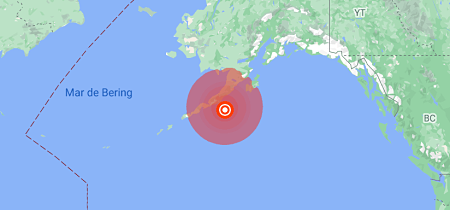 Un sismo de magnitud 8,2 ha sacudido las costas de Alaska, según el Servicio Geológico de EE.UU. Se ha registrado a las 06:15 GMT de este jueves, a unos 91 kilómetros de la localidad de Perryville.