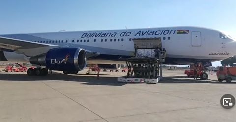 El viceministro de Comercio Exterior e Integración, Benjamín Blanco, informó este lunes que un avión de BoA llegó al aeropuerto Jorge Wilstermann de la ciudad de Cochabamba, con un nuevo lote de 500.000 vacunas chinas Sinopharm, más de 1,8 millones de jeringas e insumos para las pruebas PCR de detección del COVID-19.