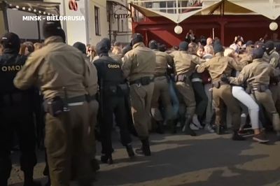 Más de 400 personas fueron detenidas este domingo durante las protestas de este domingo en Minsk contra el presidente Alexander Lukashenko, en víspera de la reunión que mantendrá mañana en Sochi con su homólogo ruso, Vladimir Putin, su principal apoyo.