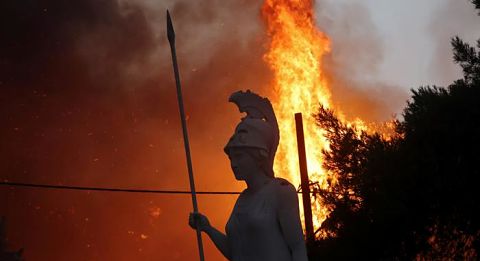 Grecia combate incendios y evacua a miles de turistas en Los Tiempos