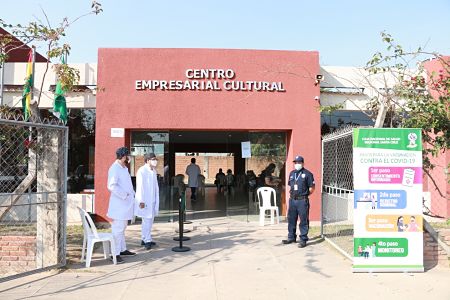 La Cámara de Industria, Comercio, Servicios y Turismo de Santa Cruz (CAINCO), con el apoyo del sector empresarial y de Asoban, inauguró este domingo el puesto de vacunación contra el coronavirus número 36, en las instalaciones del Centro Empresarial y Cultura Cainco, ubicado en el séptimo anillo de la avenida Tres Pasos al Frente, convirtiéndose en un lugar estratégico para la inmunización masiva, ya que confluye con las zonas populosas de la Villa Primero de Mayo y el Plan 3.000.