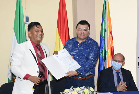 Jhonny Fernández, alcalde de Santa Cruz, recibió de manera oficial por parte del Seduca, las listas de los estudiantes de nivel inicial y primario que se beneficiarán del Bono Escolar Estudiantil de Bs. 350.