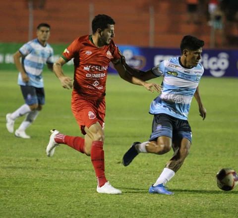 Guabirá fue una aplanadora en el primer tiempo: intenso, agresivo y contundente. Desde que inició el compromiso se adueñó del balón y a los 10 minutos se puso en ventaja. En un tiro libre, el balón quedó sobrando y en el intento de despejar, el central celeste Walter Rioja derribó a John Jairo Mosquera y el árbitro Carlos Arteaga marcó penal. El mismo delantero se encargó de definir al centro del portero Braulio Uraezaña.