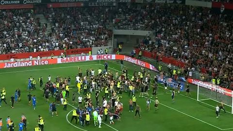 Los agentes de seguridad no dieron a basto para contener a la multitud que descendencia de las gradas y pasaba sobre los carteles de seguridad con la misión de agredir a Payet que para ese momento estaba siendo custodiado por sus propios compañeros mientras los jugadores del Niza intentaban calmar a la gente.