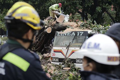Un micro de la línea 17 interno 20 que presta servicio en todo el primer anillo, quedó con daños materiales de consideración después que un árbol de gomero, frente a la plazuela 6 de Agosto cayó sobre el motorizado.
