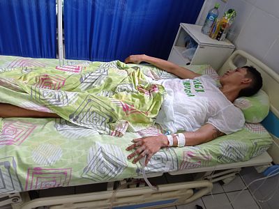Carlos Daniel Reque Cuéllar de 22 años de edad se recupera en la sala de cirugía del hospital Alfonso Gumusio del municipio de Montero después de ser atacado por un grupo de pandilleros la madrugada del domingo en la plazuela de Villa Busch zona de Guabirá.