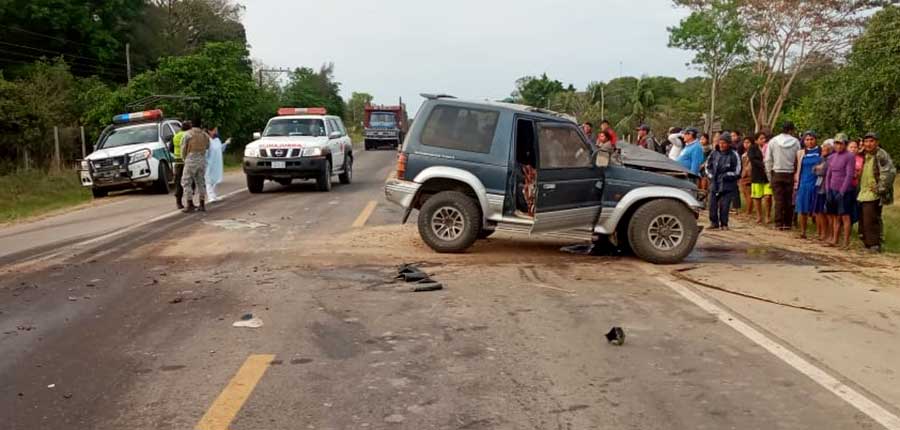 Sentada en el asiento de su jeep Mitsibishi y cruzada sobre la carretera entre Minero y Fernández Alonso, murió la mañana de este martes (06.30), Cinthia Huchani Paco después de colisionar contra un camión volvo conducido por Francisco Ch. E. (56).