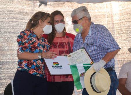 La presidente Jeanine Áñez destacó el trabajo de las autoridades del Instituto Nacional de Reforma Agraria (INRA) que sin utilizar la prebenda o chantaje hace realidad la entrega de títulos ejecutoriales a los productores del país.