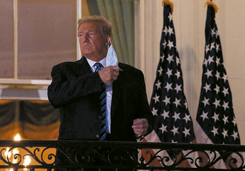 El presidente estadounidense, Donald Trump, volvió ayer miércoles al Despacho Oval a pesar de no haber superado la cuarentena por padecer la COVID-19 y de que esa oficina se encuentra en la estrecha Ala Oeste, donde trabajan decenas de personas.