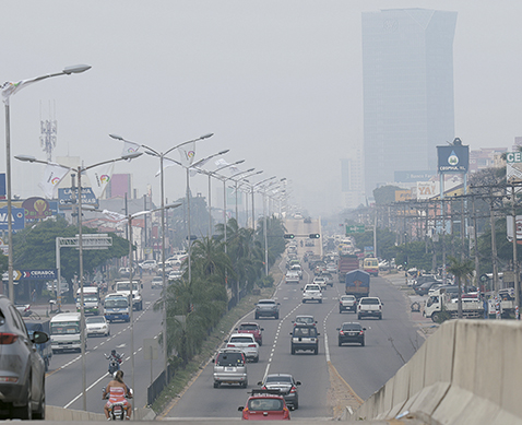 Este lunes, la ciudad de Santa Cruz amaneció bajo una espesa humareda debido a los incendios forestales que se registran en los municipios y otras regiones del departamento, lo cual ya afecta a la ciudad. Desde tempranas horas se pudo notar y sentir el humo en el ambiente que causa malestar a la ciudadanía, además, que no se registran vientos que puedan liberar los cielos.
