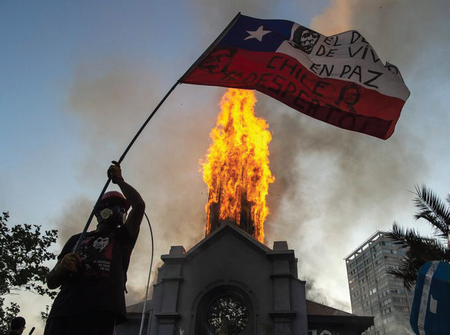 Dos iglesias quemadas y varios saqueos tras multitudinaria marcha en Chile en Los Tiempos