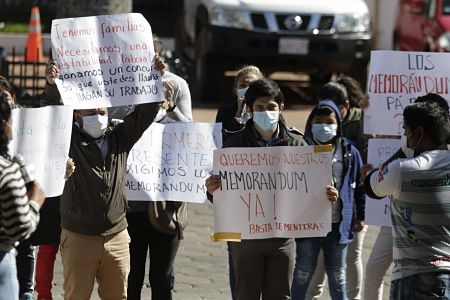 Un grupo de profesionales en salud que viene peregrinando desde hace seis meses la entrega de sus memorándum de designación, ganados en un concurso de méritos en enero pasado, protestó afuera del hotel Los Tajibos donde se encontraba desarrollando la 1ra Cumbre...