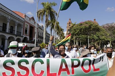 Un grupo de policías del servicio pasivo se concentró este martes en la plaza 24 de Septiembre de Santa Cruz para expresar su repudio al proyecto de ley de ascensos en la institución. Rechazan que la norma ponga a un civil, el ministro de Gobierno, como cabeza de la institución y que además se aumen...