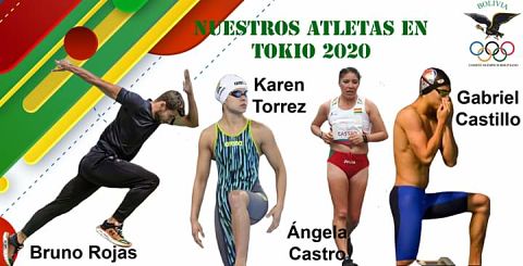 Los nadadores Karen Torrez y Gabriel Castillo, junto a la marchista Angela Castro y el corredor en 100 metros planos Brunos Rojas, serán los cuatro deportistas que representarán a Bolivia en los Juegos Olímpicos de Tokio, a desarrollarse del 23 de julio al 8 de agosto del presente año. Los cochabamb...