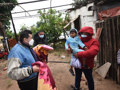A pesar de las bajas temperaturas registradas en la capital cruceña, las brigadas móviles municipales, integradas por 40 médicos, llegaron hasta el Distrito Municipal N°5 para realizar las pruebas antígenos nasal, asistir, diagnosticar y medicar, de ser necesario, a las personas con síntomas de Covi...