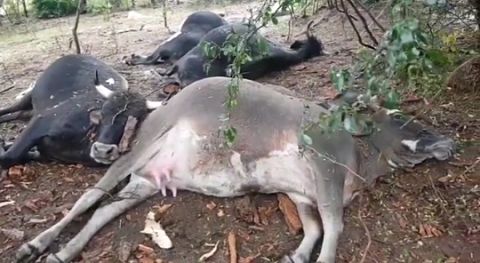 Tres vacas, un toro y un ternero murieron la madrugada del domingo alcanzados por un rayo en en municipio de Mairana en la provincia Florida del departamento de Santa Cruz. Las vacas se encontraban refugiadas de la lluvia debajo un árbol el momento que recibieron la descarga eléctrica que las fulmin...