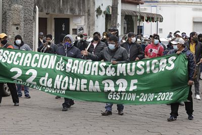 Al ritmo de la banda, agremiados a la Asociación de Músicos en Santa Cruz, salieron a protestar a las calles exigiendo a las autoridades ser tomados en cuenta y una vacunación masiva a su sector vapuleado por la crisis económica que viene generando la pandemia. Evaldo Antelo presidente de esta asoci...