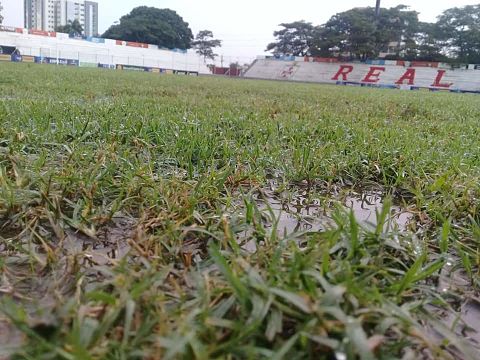 Debido a la intensa lluvia caída este viernes en la capital cruceña, la cancha del estadio de Real Santa Cruz quedó en malas condiciones para disputar el encuentro entre el club 'albo' y Real Potosí, que estaba programado para las 15:00, por la quinta fecha del torneo único de la División Pr...