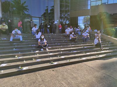 Universitarios de la carrera de Ciencias Políticas, Jurídicas y Sociales de la U.A.G.R.M., encabezaron un plantón a los pies del Palacio de Justicia rechazando la violencia contra la mujer. Una treintena de flores pegadas con mensajes en las gradas, resaltaron la protesta que llevo como lema "Seremo...