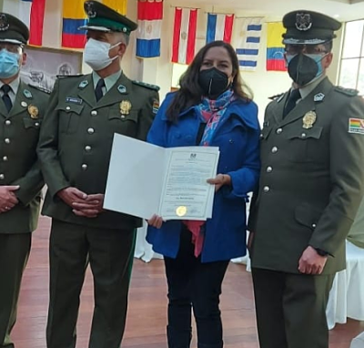 En un acto protocolar realizado en la ciudad de La Paz, por el aniversario de la Fuerza Especial de Lucha contra la Violencia, las autoridades policiales entregaron hoy un Emblema de Oro a la Fundación Voces Libres, en reconocimiento a su trabajo en la lucha Integral contra la violencia hacia las mu...