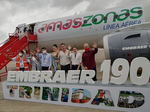 Dos carros bomberos con chorros de agua y de fondo la música de los macheteros dieron la bienvenida este jueves en Trinidad al Embraer 190, con el que la aerolínea Amaszonas cubrirá la ruta entre la capital beniana y Santa Cruz de la Sierra. El gerente de la aerolínea, Diego Urioste y el gobernador ...