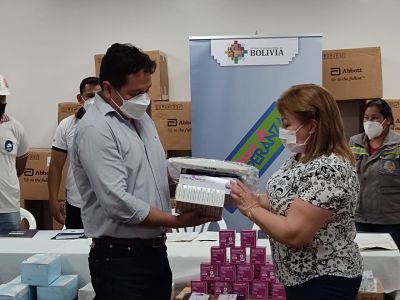 El viceministro de Gestión del Sistema Sanitario, Álvaro Terrazas, entregó este domingo 20.000 pruebas de antígeno nasal para la lucha contra el COVID-19 en el departamento de Pando. “Hoy estamos nuevamente presentes para hacer entrega de estas 20.000 pruebas antígenicas que son parte de una estrate...