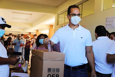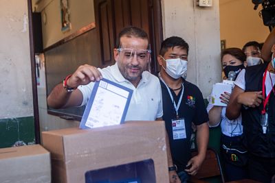 El candidato a la gobernación de Santa Cruz por el Movimiento Al Socialismo (MAS), Mario Cronenbold, sufragó a las 9.08 en la mesa 5 de la Unidad Educativa Valle Sánchez del municipio de Warnes y tras cumplir con su deber cívico instó a la población a vivir la fiesta democrática sin insultos y con r...