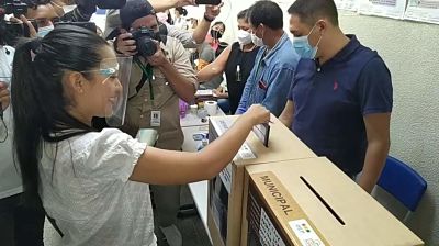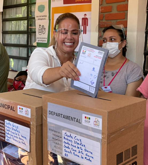La alcaldesa interina de Santa Cruz y candidata para seguir en el cargo, Angélica Sosa (Santa Cruz Para Todos), cumplió con su deber ciudadano en el colegio Sarah Porras, del barrio La Carmelita. Sufragó poco antes de las 10.00 en la mesa 13....