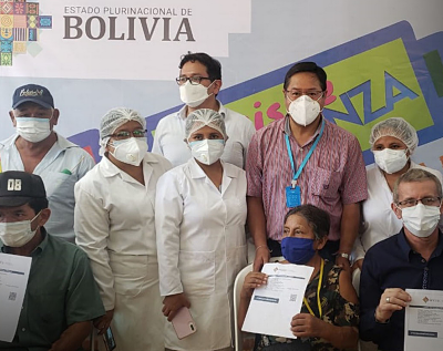 La vacunación masiva y gratuita contra el COVID-19 comenzó este sábado en el departamento de Beni y la primera inmunizada fue Edelmira Torrez Gutiérrez, enferma renal crónica, quien agradeció al presidente Luis Arce por hacer realidad el sueño de la llegada de los inmunizantes que permitirán que las...