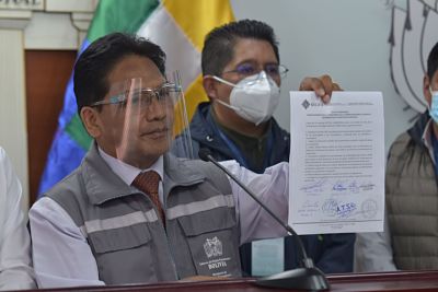 El ministro de Salud, Jheison Auza, informó hoy que se tiene previsto que para mañana martes se conozca la fecha y la cantidad de vacunas que llegarán al país por la vía del mecanismo Covax. Covax, una iniciativa de la Organización Mundial de la Salud (OMS), persigue dotar de vacunas contra la Covi...