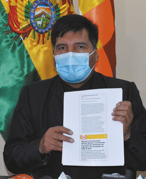El ministro de Educación, Adrián Quelca, rechazó este lunes las denuncias falsas que circulan en las redes sociales sobre el proceso de admisión de postulantes a las Escuelas Superiores de Formación de Maestros. La anterior semana cerca de 50 mil aspirantes se sometieron a los exámenes de ingreso en...