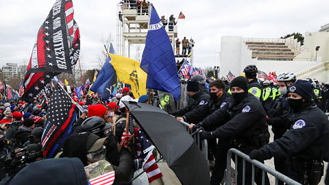 Los partidarios del presidente de EE.UU., Donald Trump, rompieron este miércoles la barricada protectora alrededor del Capitolio durante la reunión del Congreso para contar los votos electorales que convertirían oficialmente al demócrata Joe Biden en el próximo presidente. Broke down the barriers- ...
