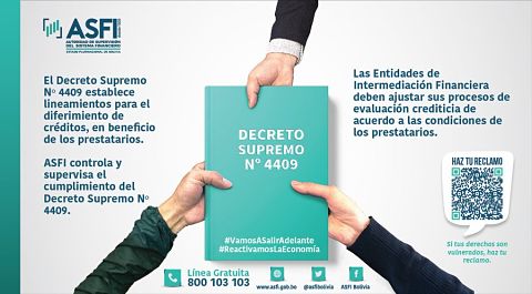 El director de la Autoridad de Supervisión del Sistema Financiero (ASFI), Reynaldo Yujra, pidió este jueves a las entidades financieras del país cumplir con el Decreto Supremo 4409, que habilita el refinanciamiento y la reprogramación de créditos, con el propósito de aliviar la crisis e impulsar la ...