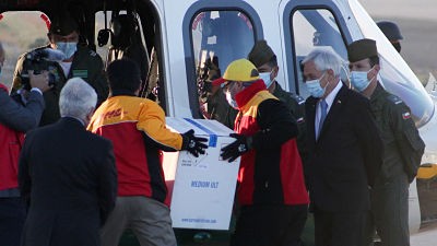 Este 24 de diciembre han llegado a Chile las primeras 10.000 dosis de la vacuna desarrollada por Pfizer contra el covid-19. Los fármacos aterrizaron en el aeropuerto de Santiago en un vuelo comercial de la aerolínea LATAM proveniente de Bélgica, donde se está produciendo la vacuna, tras hacer una es...