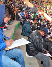 Cerca de 60 mil maestros rindieron este sábado el examen de ascenso de categoría en los nueve departamentos del país, informó el ministro de Educación, Adrián Quelca, durante el inicio de la prueba que se realiza en el col...
