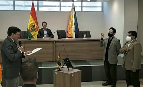 El ministro de Hidrocarburos y Energías, Franklin Molina, posesionó ayer lunes a José María Salvador Romay como viceministro de Electricidad y Energías Alternativas, además a Marco Antonio Escobar presidente ejecutivo interino de la Empresa Nacional De Electricidad (ENDE) y Eusebio Lucio Aruquipa Fe...