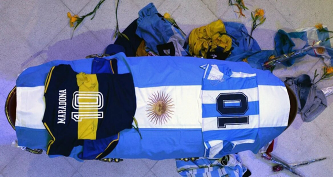 El mito argentino del fútbol Diego Armando Maradona fue enterrado este jueves por la tarde en el cementerio de Bella Vista, a 40 kilómetros de la Casa Rosada, donde comenzó el último adiós al ‘Diez’ en un velatorio que tuvo que ser suspendido por el caos y la escalada de tensión que sitió la sede de...