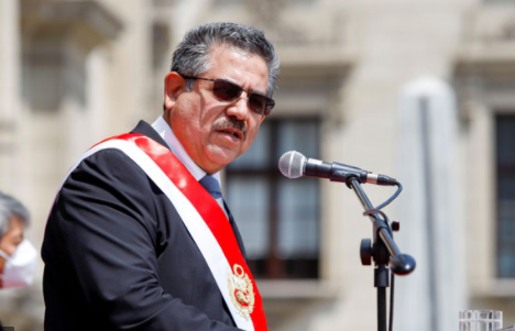 Manuel Merino, que asumió el cargo de presidente interino de Perú a principios de esta semana tras la destitución de Martín Vizcarra,...