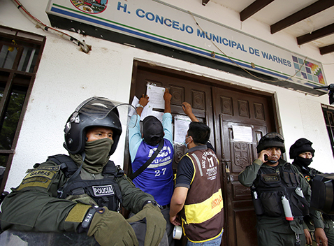 Ayer por la mañana no hubo la sesión del Concejo en Warnes, la convocatoria era para dirimir la pugna por la alcaldía, entre tanto continúa la tención en el municipio. Asimismo personas simpatizantes de Vanesa Uriona la Alcaldesa Interina, realizaron una vigilia en el ingreso al edificio municipal, ...