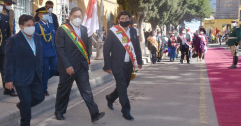 La primera visita oficial del presidente Luis Arce y vicepresidente David Choquehuanca a la Villa Imperial, a dos días de su posesión, no fue nada tranquila. Mientras participaban de los actos por la gesta de la revolución del 10 de noviembre de 1810, en los alrededores surgieron gritos de “Potosí s...