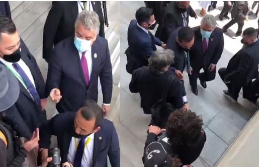 El presidente colombiano Iván Duque pasó este domingo un incidente con un grupo de personas, quienes, al salir de la Casa Grande del Pueblo en La Paz, le acusaban de ser paramilitar, en alusión a la muerte de varios líderes sociales, supuestamente en manos de grupos paramilitares. Duque se retiraba ...