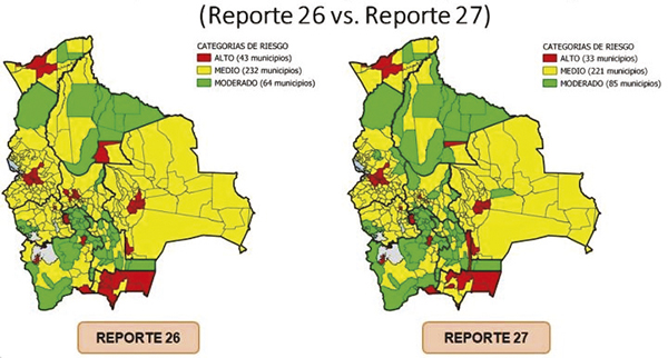 El vigesimoséptimo Reporte del Índice de Riesgo Municipal del Ministerio de Salud reportó ayer viernes que menos del 10% de los municipios de Bolivia muestra "riesgo alto" de contagios COVID-19 al comenzar noviembre. Variables epidemiológicas. "Hay 33 municipios con riesgo alto, 221 municipios con r...