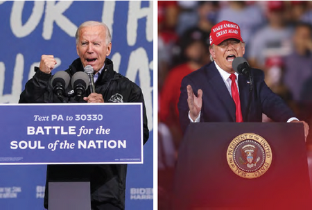El presidente Donald Trump y el demócrata Joe Biden intercambiaron críticas ayer lunes y exhortaron a la gente a ir a votar en su recorrido por estados que podrían definir la carrera a la Casa Blanca durante el último día de campaña, mientras que los estadounidenses establecían récords de votación a...