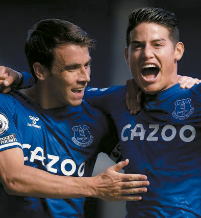 El colombiano James Rodríguez anotó su primer gol en el fútbol inglés y Dominic Calvert-Lewin anotó tres, para llevar el sábado a Everton a una victoria de 5-2 sobre West Brom, en un...